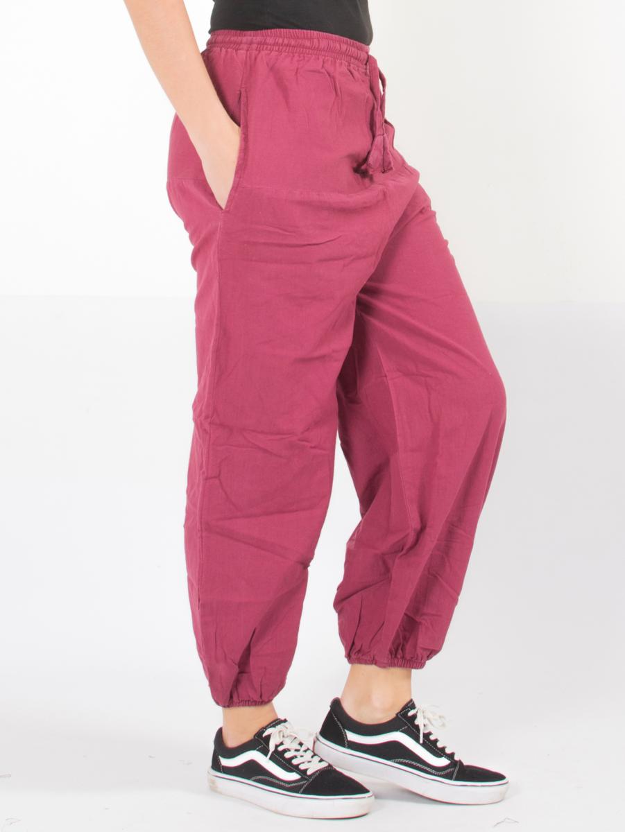 Beau pantalon bouffant ethnique bordeaux uni qui comblera votre attente de confort !